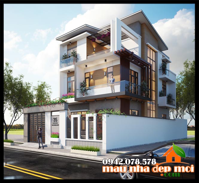 Mẫu biệt thự 3 tầng hiện đại mái lệch